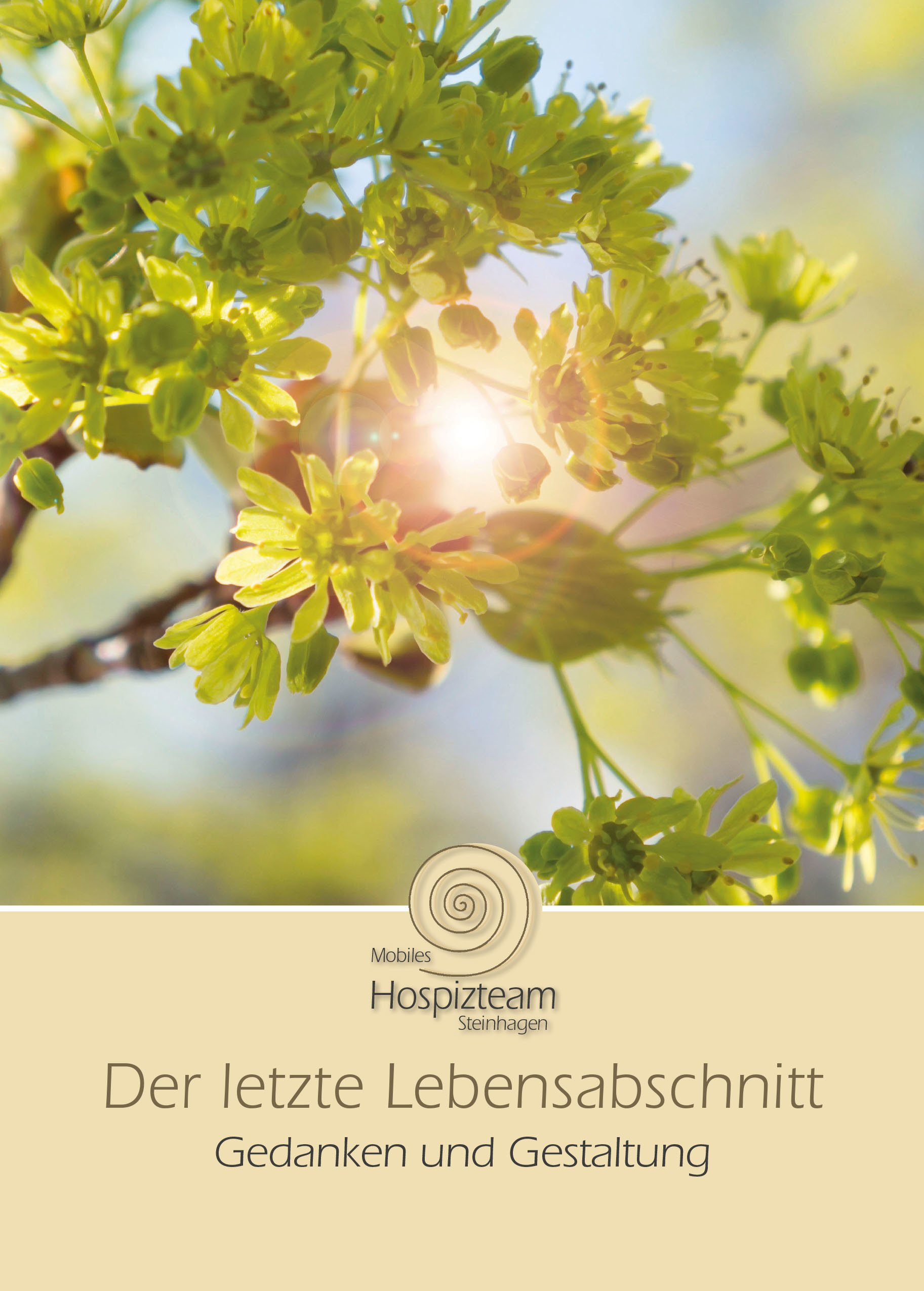 Desweiteren können Sie die durch unsere Arbeit und Erfahrung im Bereich der Hospizarbeit entwickelten Broschüre "Der letzte Lebensabschnitt" beziehen (Unkostenbeitrag 2,-€). Die Broschüre bietet dem Sterbenden die Möglichkeit, seine Gedanken und Wünsche für sein Lebensende festzuhalten und gibt gleichzeitig notwendige Informationen, die Sicherheit und Entlastung im Sterbefall geben.